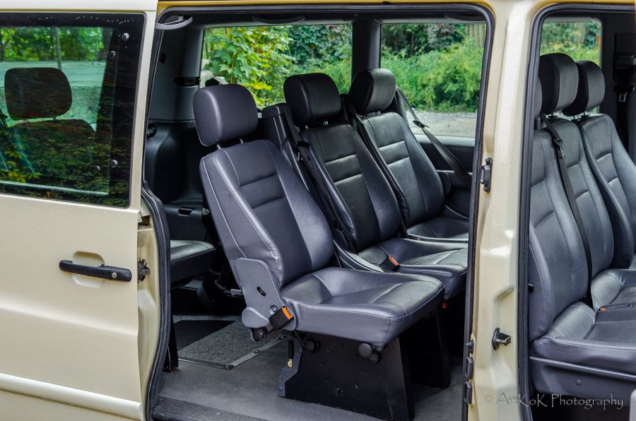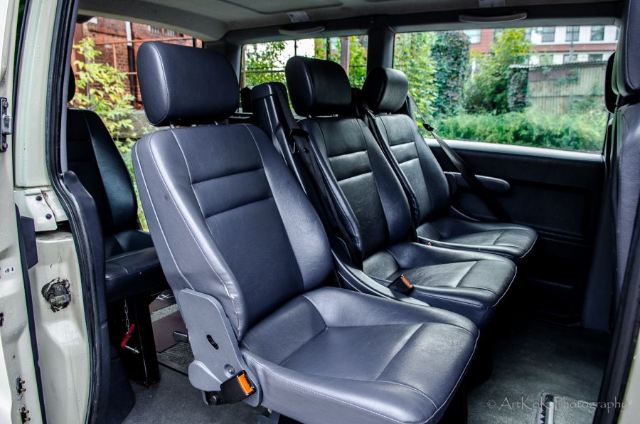 Komfortowy samochód wyposażony w klimatyzację, skórzaną tapicerkę, pasy bezpieczeństwa, mogący przewieźć jednorazowo do 8 osób.